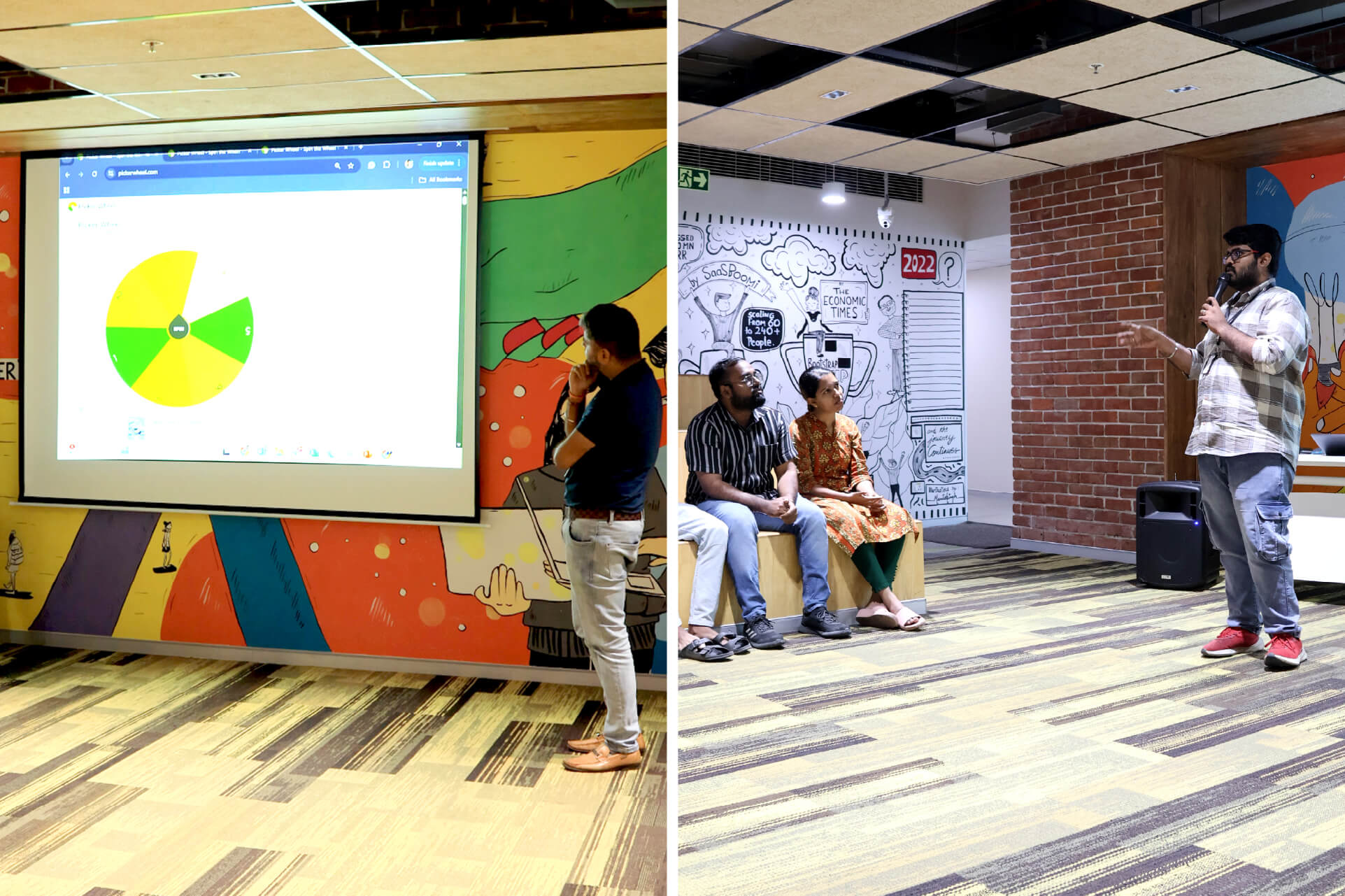 With so many people ready to play, practice sessions started even before a month. To set the stage, everyone gathered at the step seater for the fixtures meet, two days before. A spin wheel brought in the fun, while rules, dos, and don’ts were explained. This was also when teams came up with their own creative names like Pickle Pals, Pickle Rick, Net Positive, and Smashing Double, etc. The excitement grew as players discovered who they would face and began talking strategy.