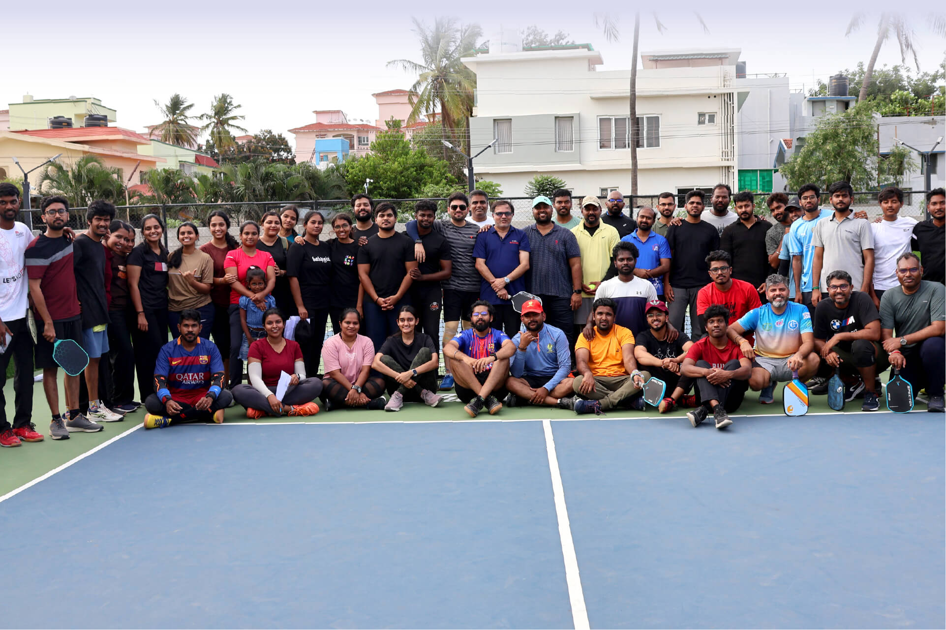 The tournament day arrived on a Saturday at The Courtside, Coimbatore. Matches began at 3 PM and went on till night. With four courts running continuously, the energy was unstoppable. More than 70 players participated, and even those who hadn’t registered came along to cheer.
